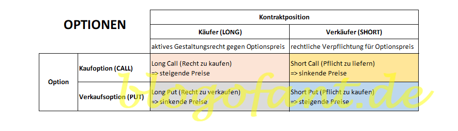 Optionen mit Kontraktposition und Kauf- bzw. Verkaufsoption