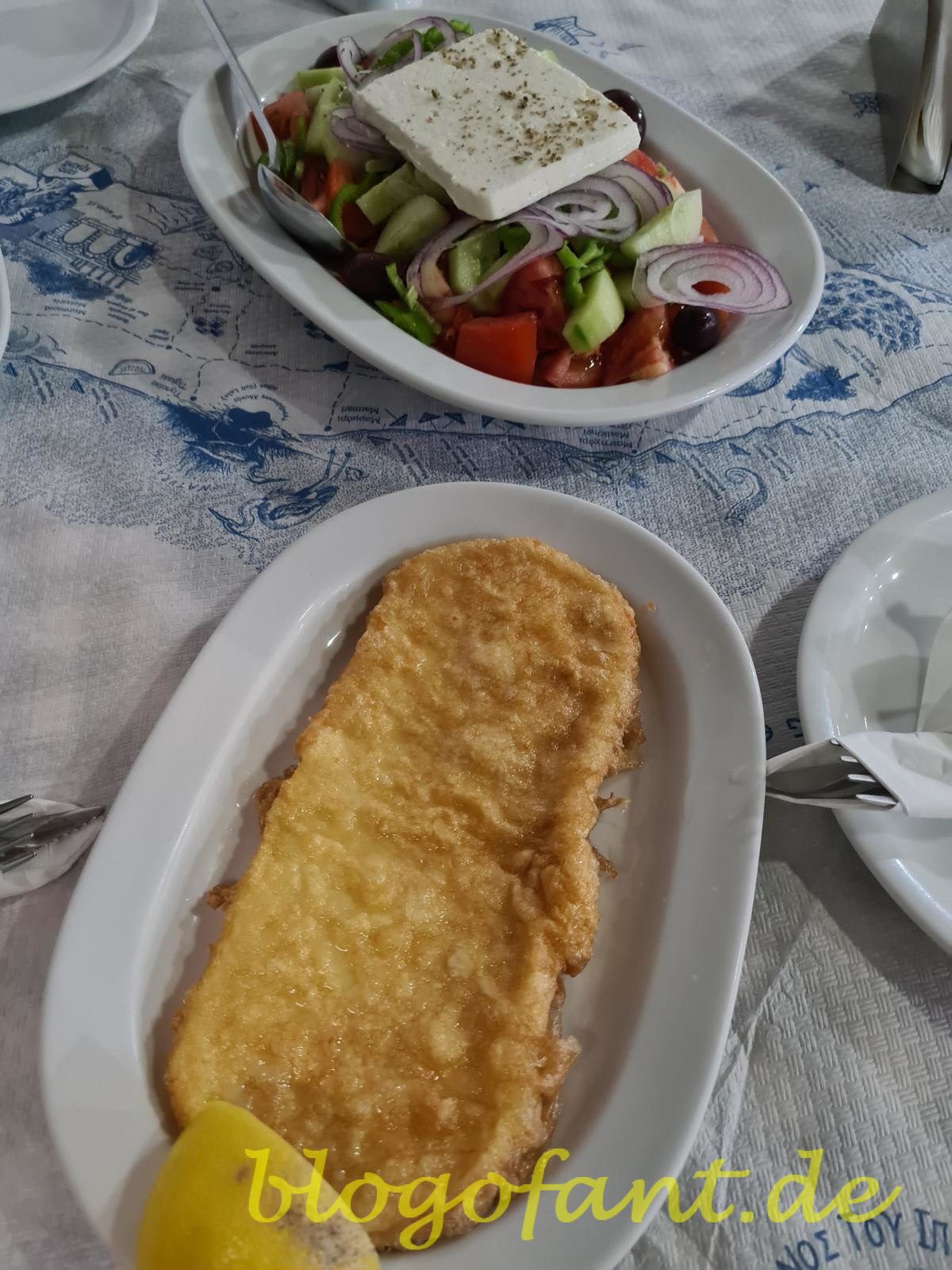 Griechischer Bauernsalat mit Schafskäse und SaganakiGriechischer Bauernsalat mit Schafskäse und Saganaki