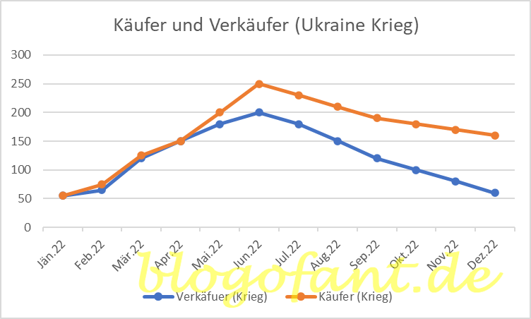 Außerdem trat die Frage auf, ob das Bekanntwerden des Krieges etwas an der Situation geändert hätte. Auch hier kommt es auf den Käufer und den Verkäufer und ihre Antizipation an. Wenn beide davon ausgehen, dass es sich nur um ein kurzfristiges Konstrukt handelt, hätte sich am Termingeschäft nichts geändert (siehe Bild).