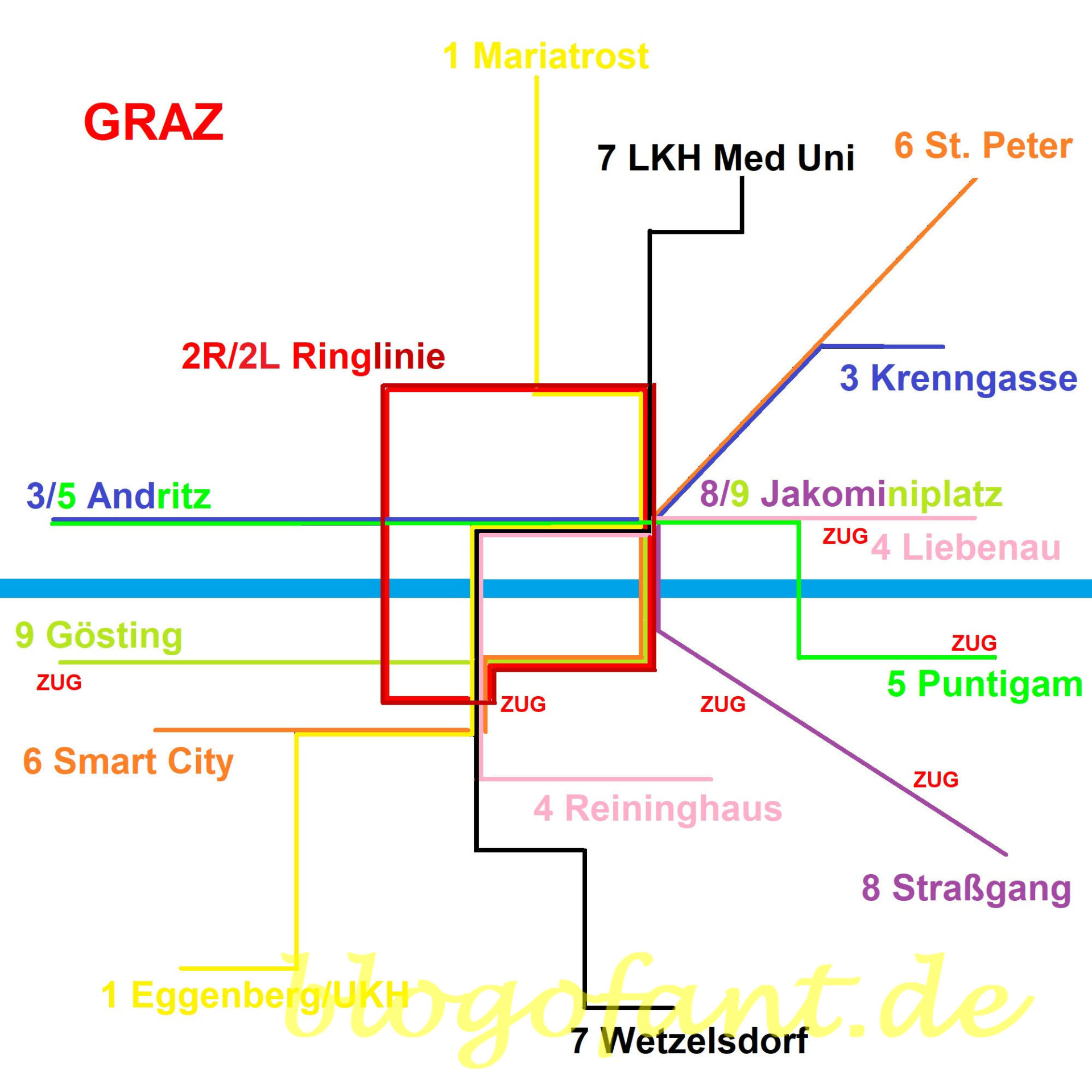 Weitere Möglichkeiten für Mobilität in Graz findest du unter den Blogartikel Schifffahrt für Graz sowie Machbarkeit einer Metro für Graz und U-Bahn Liniennetz für Graz.