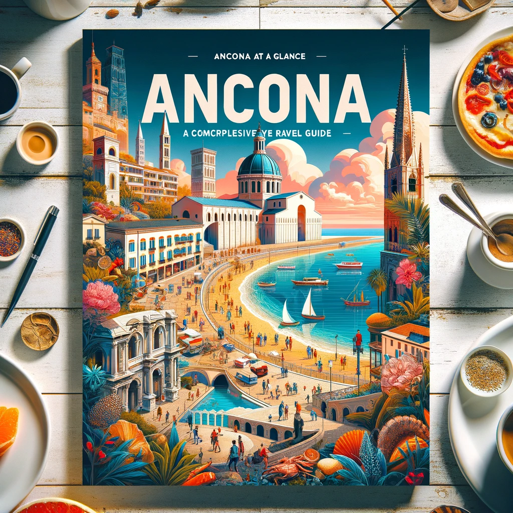 DALL·E 2024 03 21 08.49.39 A visually engaging and informative cover for a comprehensive travel guide titled Ancona at a Glance A Comprehensive Travel Guide. The cover featur