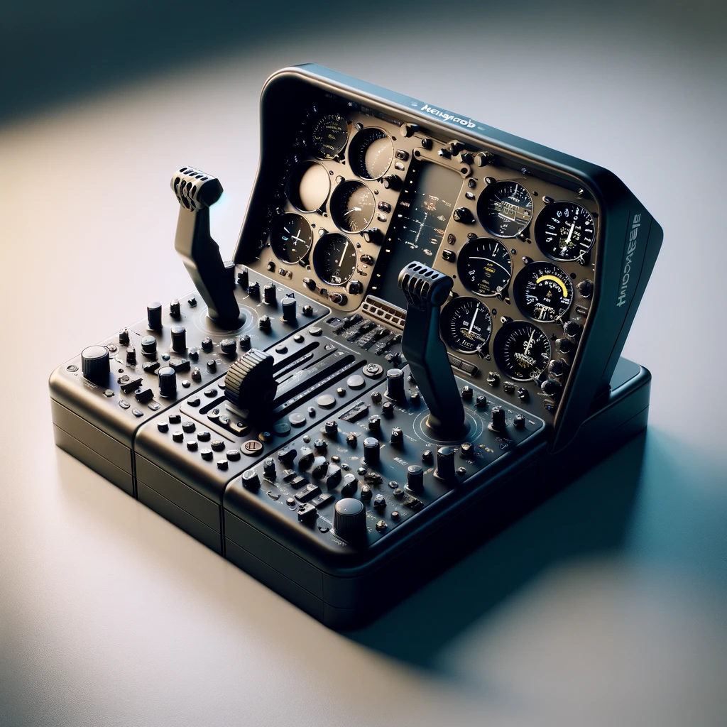DALL·E 2024-03-21 08.02.45 – A highly detailed and realistic image of the Honeycomb Bravo Throttle Quadrant, a mid-console flight control unit. This advanced piece of flight simul